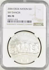 :2004 $1 シルバー クリーク インディアン ネーション スカイ ダンサー & カウンシル NGC MS70 トップ ポップ R9 3/0