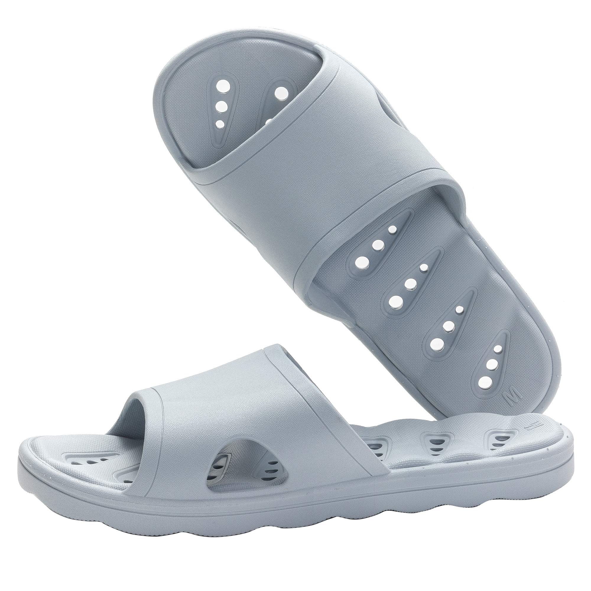 ・【・購入前にご確認ください】・普段のサイズを基準にお選びください。・フィット感を求める方は、ドライヤーで甲部分を温めることで、幅を少し縮めることが可能です。凹みや変形も同じ方法で修復できます。詳しい手順は商品詳細ページをご覧ください。・【ご注意】夏場は高温による若干の縮みが発生する可能性があります。サイズ感や着用方法についてご不安な点がございましたら、お気軽にお問い合わせください。・【理学療法士推奨新モデ・腰・足裏の痛みを軽減】ソールの厚さを4cmから3cmへ最適化し、柔らかすぎず硬すぎない、適度な弾力を持たせているため、長時間使っても型崩れしにくく、踏みしめたときの適度な弾力もよいので、長時間の立ち仕事でも疲れにくい。かかと部分には高反発クッションを搭載し、衝撃を吸収して足腰への負担を軽減します。通勤や室内履き、ベランダ、ちょっとした外出など、幅広いシーンで活躍する万能サンダルです。・【超軽量&静音設計・おうち時間を快適にするリラックスサンダル】片足わずか110gの超軽量設計で、まるで履いていないかのような軽やかさ!長時間履いても足に負担をかけず、一日中快適に過ごせます。さらに、歩くたびに「パタパタ」と響く音を軽減する静音設計を採用。フローリングを傷つける心配もなく、オフィスにいる時間や早朝・深夜の移動も安心。新築の家や集合住宅でも気兼ねなく使用できます。毎日の暮らしに寄り添い、家族みんなが心地よく過ごせる暖かな空間をサポートする、優しさにこだわったサンダルです。・【フィット感&滑り止め機能・歩行時の安心感をサポート】足裏の形状に合わせたつま先浮きデザインで、足にしっかりフィットし、歩行中の安定感をアップ。つまずきにくく、安心して履ける設計です。インソールには滑り止め粒子を施し、水濡れ時でも滑らず、アウトソールの防滑加工で水回りでも安心。お子様から高齢者まで、幅広い年齢層の方に安心してお使いいただけます。・【シャワー室でも清潔を保つ・抗菌・防臭&丸洗い可能】環境に配慮した最新EVA素材を使用し、Ag+抗菌加工を施しているため、イヤなニオイを防ぎ、清潔な状態をキープ。汚れがつきにくく、水洗い可能で、お手入れも簡単です。通気性と排水機能が強化されたデザインで、水が溜まりにくく、速乾性も抜群。かかと部分のオープンデザインがムレを防ぎ、夏場でも快適に過ごせます。浴室や水回り、プールサイドなど、シーズンを問わず使える万能サンダルです。説明 【EVA樹脂の注意点】EVA素材は火のそばや直射日光の当たる場所に置くと、軟化又は変形(縮み)、褪色の恐れがありまから、高温になる場所での着用、保管はおやめください。長時間直射日光禁止!不使用時はスリッパを日陰の涼しい所に置いてください。