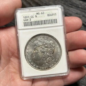 1891-CC $1 Morgan Silver Dollar MS62 Soapbox Spitting Eagle Top 100 VAM-3商品について額面 1ドル流通/非流通 非流通コイン モルガングレード MS 62製造国/地域 アメリカ合衆国種類 VAM-3認証 ANACS組成 銀90%、銅10%発行年 1891年鋳造方法 ビジネス造幣局所在地 ネバダ州カーソンシティ注意事項※以下の注意事項をご理解のうえ、ご購入ください■ 鑑定済みコイン・紙幣について各種コイン・紙幣の鑑定機関(NGC、PCGS、PMGなど)は、収集品の真贋鑑定およびグレーディングを行う専門機関です。鑑定後の商品は、専用ケース(スラブ)に封入され、状態を示すグレードが付与されます。■ グレードについてグレードはコイン・紙幣自体の状態を評価するものであり、ケース自体の品質や状態を保証するものではありません。製造・輸送時の影響により、以下のような状態が発生する場合がございます。- 軽微なスレ傷・拭き傷(特に光の角度で見えるもの)- ケース内部のホコリ・小さな異物(鑑定機関の検品基準を満たしている場合)- ラベルのズレ・わずかな傾きこれらは鑑定機関の基準内であり、返品・交換の対象とはなりませんのでご了承ください。■ ラベルの種類について各鑑定機関では、コイン・紙幣の状態や鑑定の結果に応じて異なるラベルが付与されます。- 通常ラベル(Standard/Regular):一般的なグレード付き鑑定済みコイン・紙幣- オーセンティック(Authentic):グレードなしで真贋のみ保証- 詳細グレード(Details):クリーニング跡やエッジのダメージがあるが本物と認定- 特別ラベル(Special Label):記念版や特定のデザインの限定ラベル - 例:NGC「Early Releases」「First Releases」、PCGS「First Strike」 などグレードやラベルの種類は、商品画像および説明文をご確認のうえ、ご購入ください。■ 在庫状況について当店の商品は海外から取り寄せております。ご購入のタイミングによっては在庫切れとなる場合がございます。その際はご連絡のうえ、ご注文をキャンセルさせていただく場合がございますので、あらかじめご了承ください。■ ご注文後のキャンセルについてご注文と同時に商品のお取り寄せを開始するため、お客様都合によるキャンセルは承っておりません。■ 配送についてお届けまでに通常2〜3週間ほどかかります。海外の祝日や天候、税関手続きにより通常より配送が遅れる可能性がございます。■ 保証について商品説明に英語で「保証(warranty)」と記載があっても、日本国内では適用されませんのでご了承ください。 当店では、商品到着後7日以内の初期不良に限り、対応させていただきます。 (返品規約の詳細については、楽天市場内の会社概要欄下部をご参照ください。)■ 商品の色・素材感について撮影環境やモニター設定により、実際の商品と色味や質感が異なる場合がございます。■ 価格変動について希少性の高い商品は市場価格の変動により、追加料金をお願いする場合がございます。追加料金に同意いただけない場合には、ご注文のキャンセルが可能ですので、ご安心ください。■ その他サービスについて海外製品の輸入代行も承っております。ショップに掲載されていない商品でもお探し可能ですので、お気軽にご相談ください。尚、業者販売(業販)や複数購入の場合、割引対応も可能です。ご希望の方はお問い合わせください。