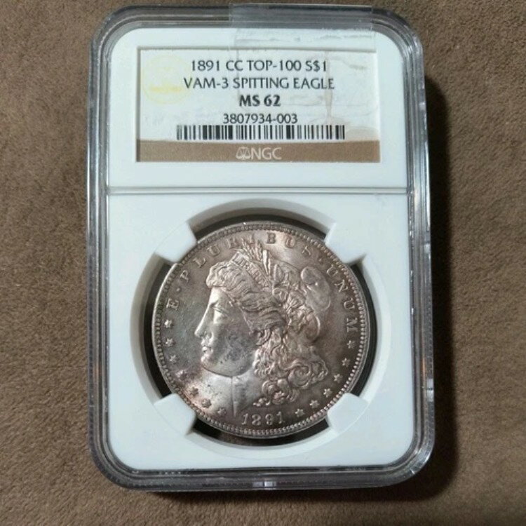 1891 CC トップ100 $1 VAM-3 スピッティングイーグル CC モルガン シルバーダラー NGC MS62