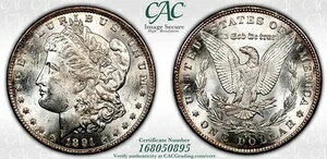 1891年 CC モルガン シルバー ダラー $1 PCGS CAC MS62 スピッティング イーグル バラエティ