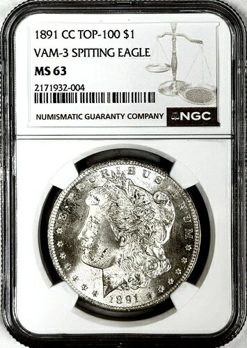 1891 CC TOP-100 VAM-3 スピッティングイーグル モルガン銀貨 MS64 NGC カーソンシティ