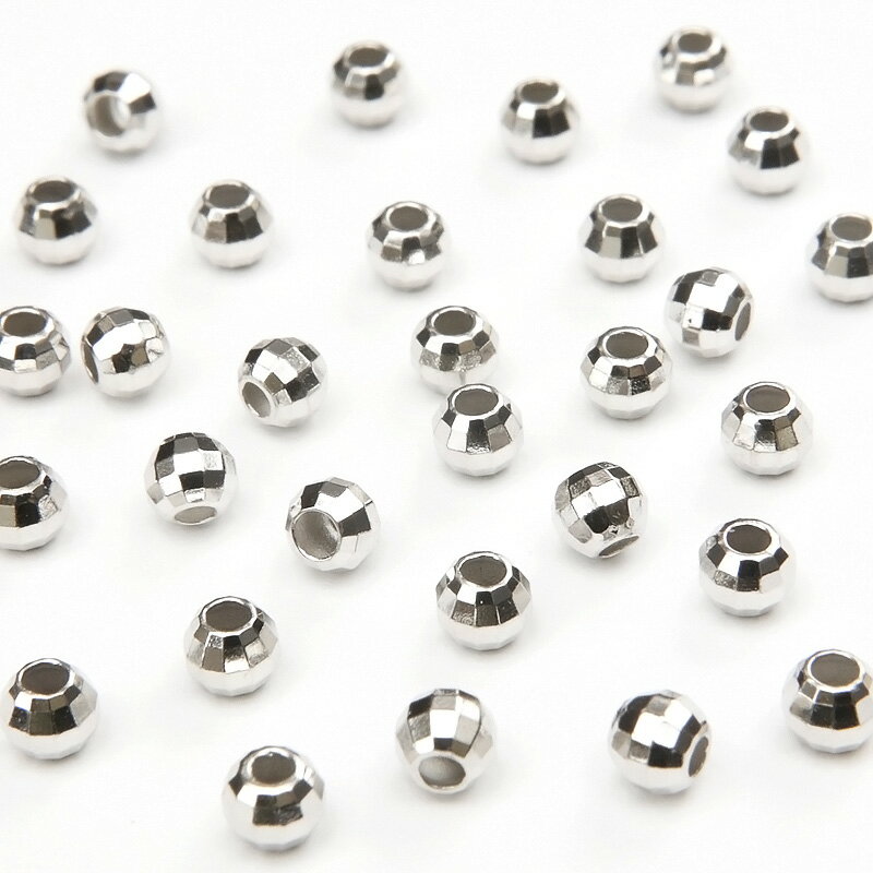 SILVER925 ビーズ 面カット 丸玉 3mm[ロジウム]【5コ販売】▽ シルバー925 パーツ アクセサリー クラフト 金具 USA製 925銀 スターリングシルバー Sterling Silver