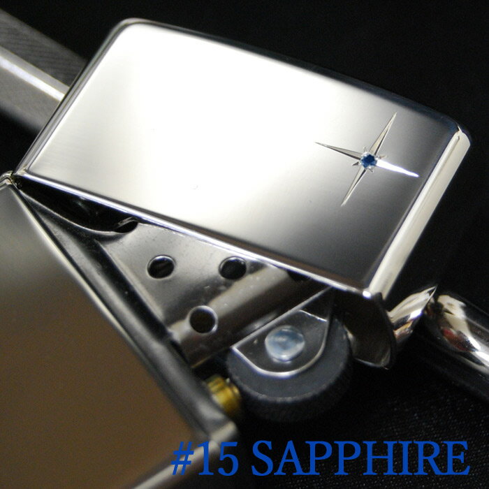 スターリング シルバー #15 天然サファイア ◆ZIPPO ジッポー オイル ライター 喫煙具 Sterling Silver 純銀 天然石 Sapphire
