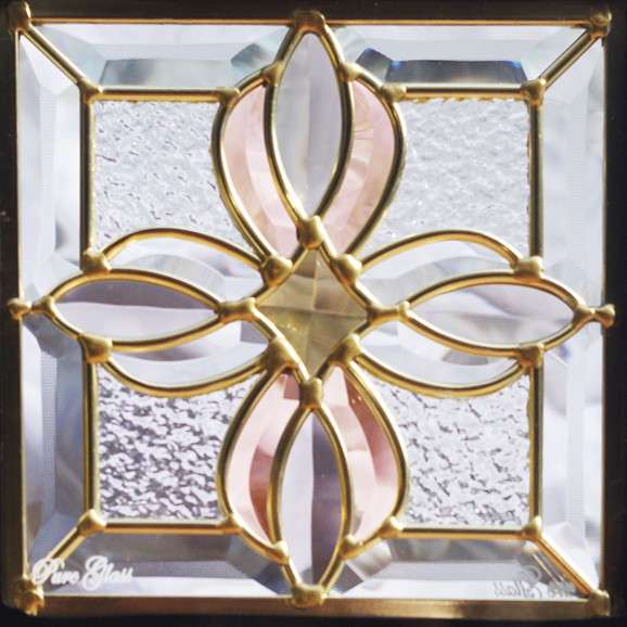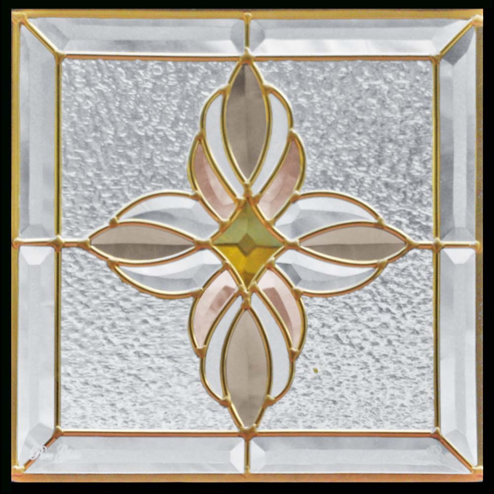 ステンドグラス SH-D25 Dサイズ W200×H200×T18mm ケーム色:ゴールド 一部鏡面ガラス【強化ガラス 三層構造 手作り オーダーメイド可 目隠し 防犯 防音 断熱 壁 窓 ドア 屋外 屋内 室内 インテリア エクステリア セブンホーム】