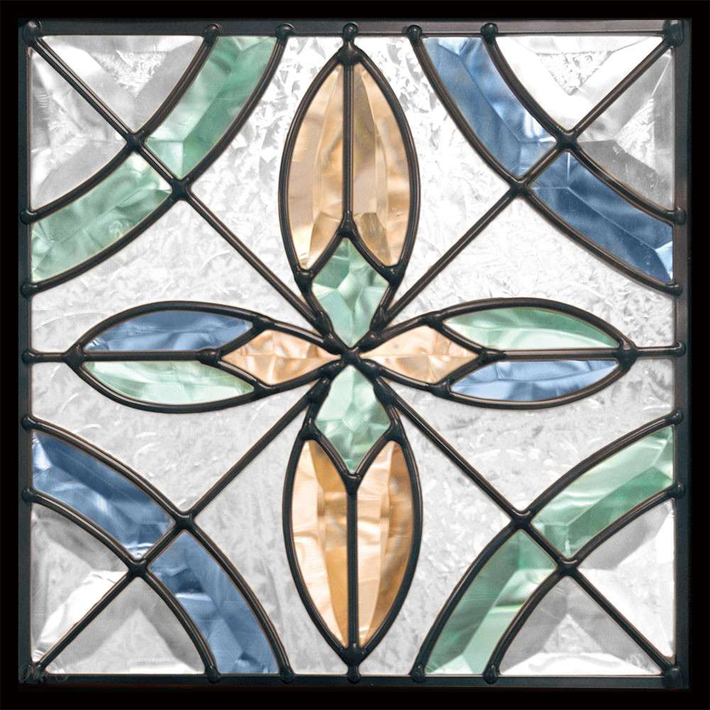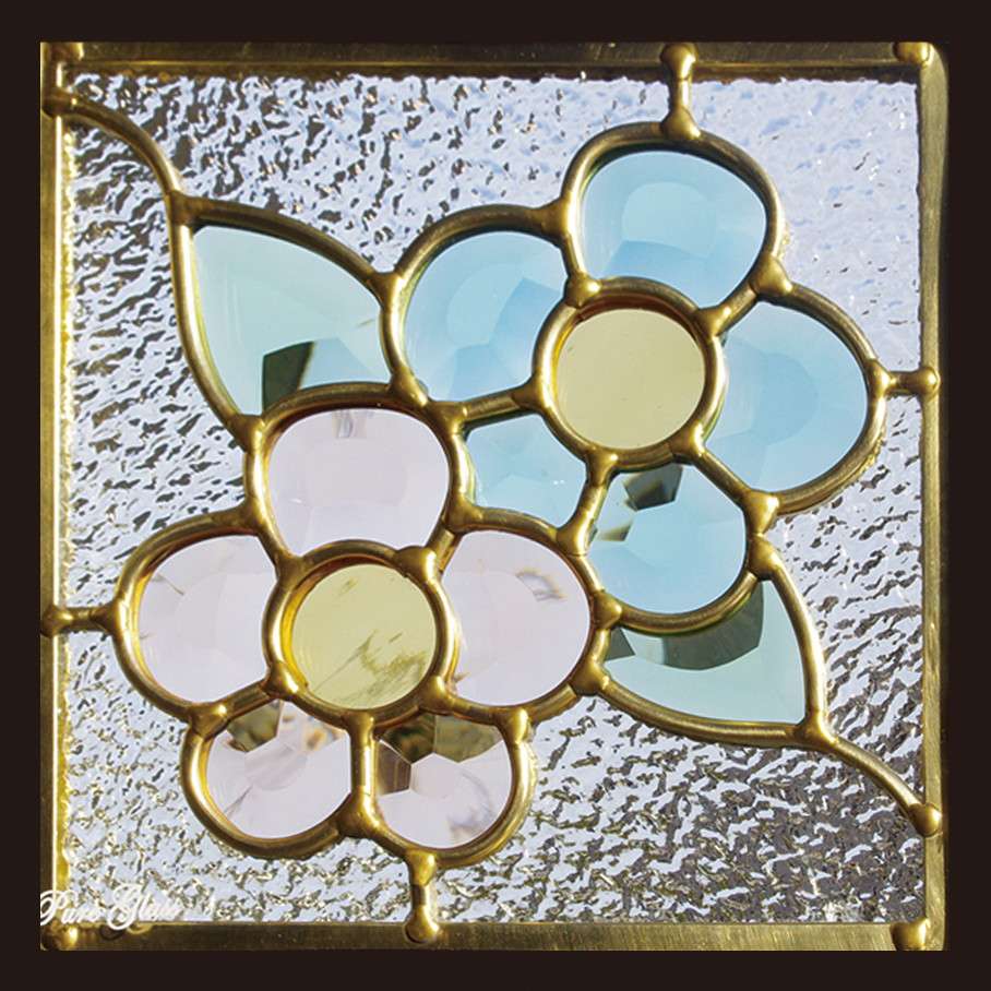 ステンドグラス SH-L06 Lシリーズ W200×H200×T18mm カッパーホイル技法【強化ガラス 三層構造 手作り オーダーメイド可 目隠し 防犯 防音 断熱 壁 窓 ドア 屋外 屋内 室内 インテリア エクステリア セブンホーム】