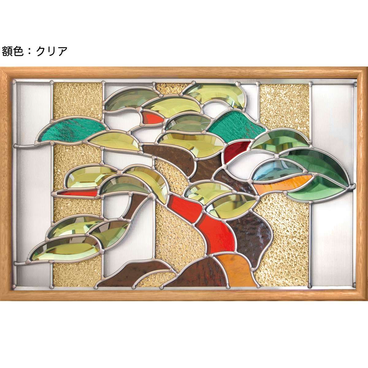 ステンドグラス SH-A42 Aサイズ W480×H913×T18mm ケーム色:ゴールド 一部鏡面ガラス【強化ガラス 三層構造 手作り オーダーメイド可 目隠し 防犯 防音 断熱 壁 窓 ドア 屋外 屋内 室内 インテリア エクステリア セブンホーム】
