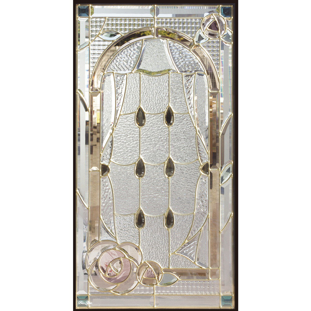 ステンドグラス SH-A19 Aサイズ W480×H913×T18mm ケーム色:ゴールド 一部鏡面ガラス【強化ガラス 三層構造 手作り オーダーメイド可 目隠し 防犯 防音 断熱 壁 窓 ドア 屋外 屋内 室内 インテリア エクステリア セブンホーム】