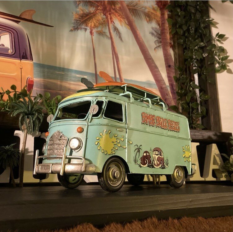 「カリフォルニア・ビンテージ」!! 大型ブリキ製 高級ワーゲンバス!! 男前インテリア アメリカンビンテージ アメリカンカジュアル ミニカー California SURF サーフボード ブリキのおもちゃ VolksWagen ワーゲンバス 店舗什器 店舗展示品 DandyLifeSpace