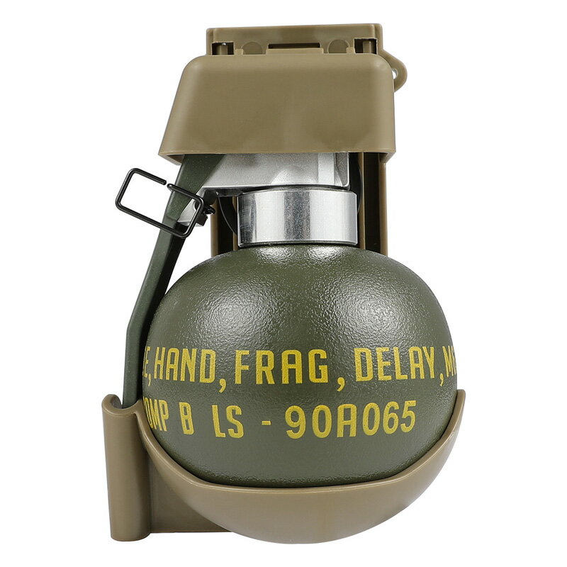 1,000円以下の商品を見る 2,000円以下の商品を見る 3,000円以下の商品を見る 4,000円以下の商品を見る 5,000円以下の商品を見る 6,000円以下の商品を見る商品詳細 米軍等で使用されているM67タイプのダミーグレネードです。 その形状と質感からアップルグレネードとも呼ばれるポピュラーな手榴弾です。 ダミーモデルながらマーキングはもちろん、安全レバーやピンなど構造的な造りも再現。 内部は空洞となっているため、小物やBB弾収納用として使用することや、砂や水を入れて重量を付加することも可能となっています。 また、専用の樹脂製スリーブが付属しており、グレネードを上下から保護する構造を採ることで、誤爆や誤操作が防止される造りとなっています。 使用時にはトップのカバーを展開して取り出すことができます。 MOLLEシステム対応でタクティカルベストやベルトなどに装着可能です。 サイズ:113×86×76mm 重量:約100g 材質:ABS/メタル 【注意事項】 本製品はダミーモデルですので装飾以外の使用用途はありません。 本製品は輸入品の為、パッケージに多少の傷や汚れがある場合があります。
