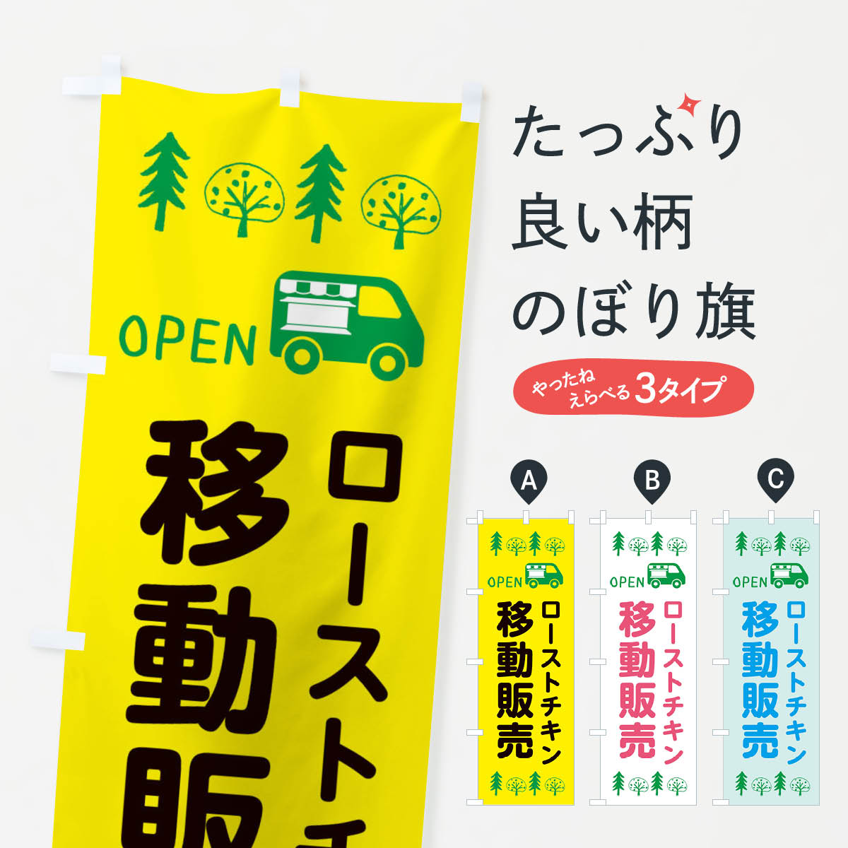 【ネコポス送料360】 のぼり旗 ローストチキン移動販売・キッチンカー・フードトラック・イラスト・オープンのぼり XNSF グッズプロ 【名入れできます+1017円】