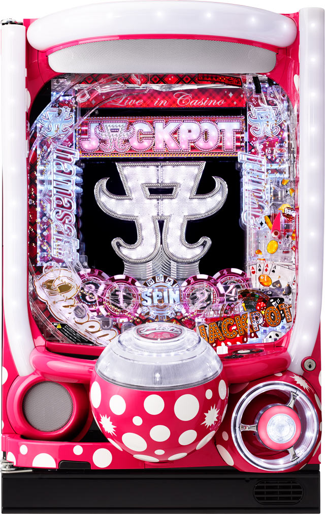 機種概要 メーカー D-light 型式名 P浜崎あゆみKG-JJF タイプ ライト 継続回数 2or4or5or10R4カウント 出玉数 約120個or約240個or約300個or約600個 賞球数 3&1&4&15 大当たり確率 1/193.8 高確率時1/23.9 時短 大当たり後に100回 備考 ※時短引き戻し込みのST突入率:42.2% ※ST継続率:95.7% ※小当たり確率:1/27.3 機種紹介 平成の歌姫「浜崎あゆみ」の高継続パチンコ機として『超継続パチンコ ayumi hamasaki~LIVE in CASINO~』が登場した。 本機は、約50秒に1回出玉増加が期待でき、なおかつ継続率 約95.7%のST「JACKPOT TOUR」が最大の特徴となっている。演出面では「M」や「BLUE BIRD」といった人気楽曲をPV&LIVE含め25曲搭載。 通常時は、カジノをイメージしたゲーム性となっており様々な演出でptを獲得。ptは盤面上部の「JACKPOTギミック」で確認でき、最終的に10,000pt獲得で大当たり濃厚となる。 出玉のカギとなる電サポ付きST74回転の「JACKPOT TOUR」は、PREMIUM JACKPOT BONUS後、「LIVE IN CASINO」中の大当たり後に突入。 滞在中の大当たり後は再び「JACKPOT TOUR」へ突入する仕様で、継続率は約95.7%。 なお、通常時の大当たり後は大半が時短100回転の「LIVE IN CASINO」へ突入。その滞在中に大当たりを引き当てることが「JACKPOT TOUR」突入へのメインルートとなる。 スペックは、大当たり確率1/193.8、初回大当たり後3%、電サポ中は100%の確率で74回転のSTに突入する、ライトSTタイプ。潜伏確変は一切存在しない仕様となっている。 ※「パチンコ用設定キー」が必要な機種の場合は付属しております。※