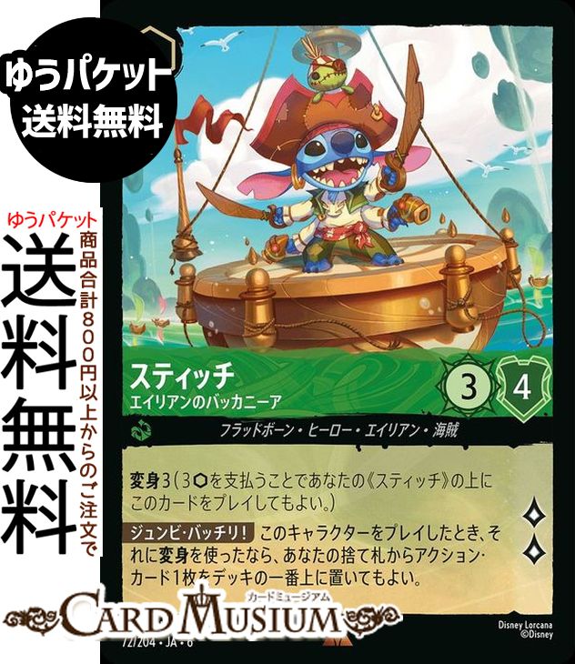ディズニーロルカナ スティッチ_エイリアンのバッカニーア(レア) AZURITE SEA 大いなるアズライト(072/204) Disney LORCANA | ディズニー ロルカナ エメラルド フラッドボーン・ヒーロー・エイリアン・海賊