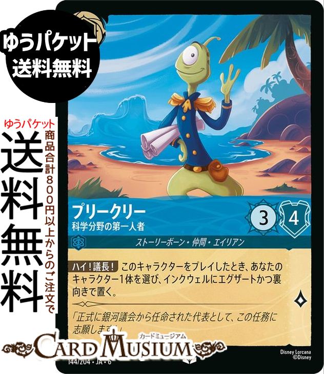 ディズニー ロルカナ「AZURITE SEA 大いなるアズライト」(DL-06)収録 ●カード名:プリークリー_科学分野の第一人者 ●レアリティ:アンコモン ●タイプ:キャラクター ●インク:サファイア ●インクウェル:インク可能 ●コスト:3 ●ロア値:1/攻撃力:3/意思力:4 ●クラス:ストーリーボーン・仲間・エイリアン [テキスト] 【ハイ!議長!】このキャラクターをプレイしたとき、あなたのキャラクター1体を選び、インクウェルにエグザートかつ裏向きで置く。★当店のシングルカードはデッキ,パック開封品です。100円以上または、レア以上のカードはカードプロテクター(スリーブ)にて管理保管されています。