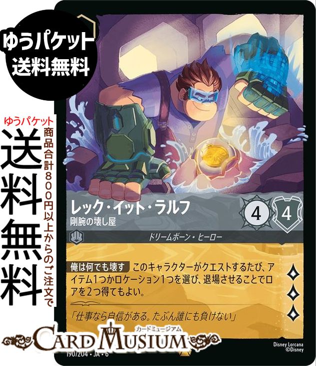 ディズニー ロルカナ「AZURITE SEA 大いなるアズライト」(DL-06)収録 ●カード名:レック・イット・ラルフ_剛腕の壊し屋 ●レアリティ:レジェンダリー ●タイプ:キャラクター ●インク:スティール ●インクウェル:インク不可 ●コスト:6 ●ロア値:3/攻撃力:4/意思力:4 ●クラス:ドリームボーン・ヒーロー [テキスト] 【俺は何でも壊す】このキャラクターがクエストするたび、アイテム1つかロケーション1つを選び、退場させることでロアを2つ得てもよい。★当店のシングルカードはデッキ,パック開封品です。100円以上または、レア以上のカードはカードプロテクター(スリーブ)にて管理保管されています。