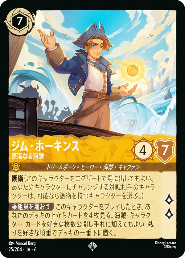 ディズニー ロルカナTCG 25/204・JA・6 ジム・ホーキンス 高潔なる海賊 (日本語版 スーパーレア) AZURITE SEA 大いなるアズライト