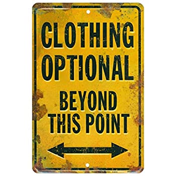 【中古】【輸入品・未使用】HANGTIME Clothing Optional Beyond This Point ノベルティパーキングサイン ファニーアンティーク調メタル壁装飾 ビンテージ 20.32×30.48cm 錆