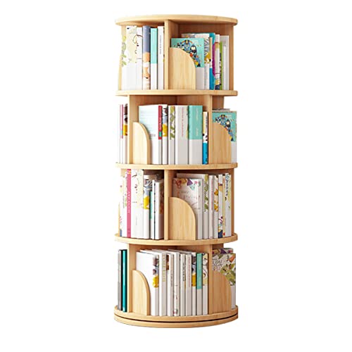 Yumcute 本棚 回転式 天然木 4段 大容量 スリム A4が入る高さ コミックラック 絵本棚 漫画 収納 ブックシェルフ CD/DVDラック 天板に物が置ける(4段)