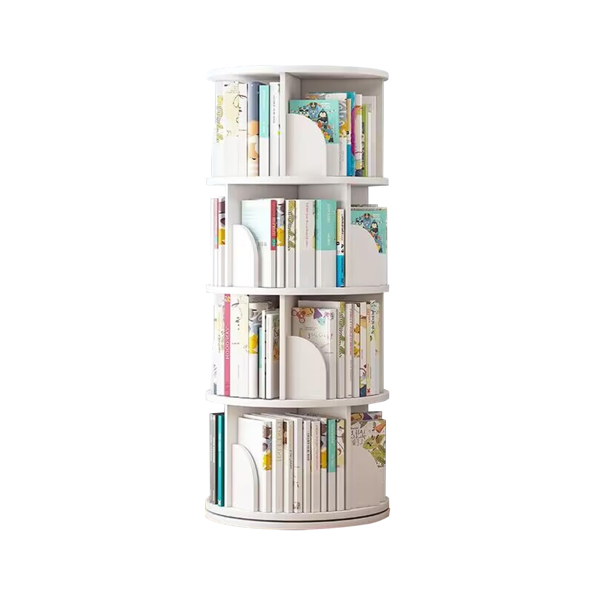 APPOLYN本棚 回転式本棚 4段 直径40CM*高さ128CM A4紙が入る高さ コミックラック 漫画 絵本棚 収納棚 大容量 CDラック DVDラック ホワイト
