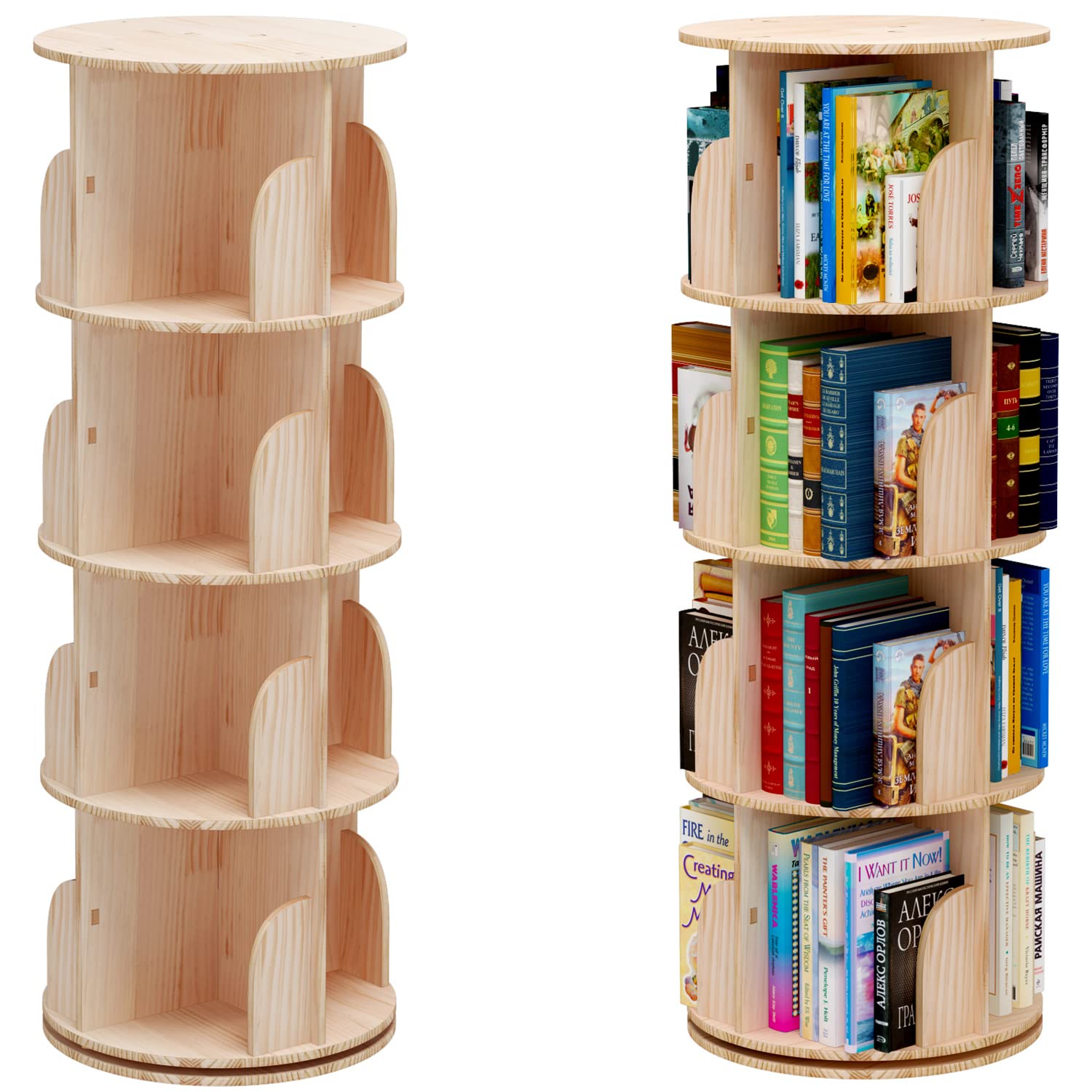 Yumcute 本棚 回転式本棚 【天然木】 4段 大容量 スリム コミックラック 絵本棚 漫画 収納 回転ラック ブックシェルフ 収納棚 CDラック DVDラック 天板に物が置ける