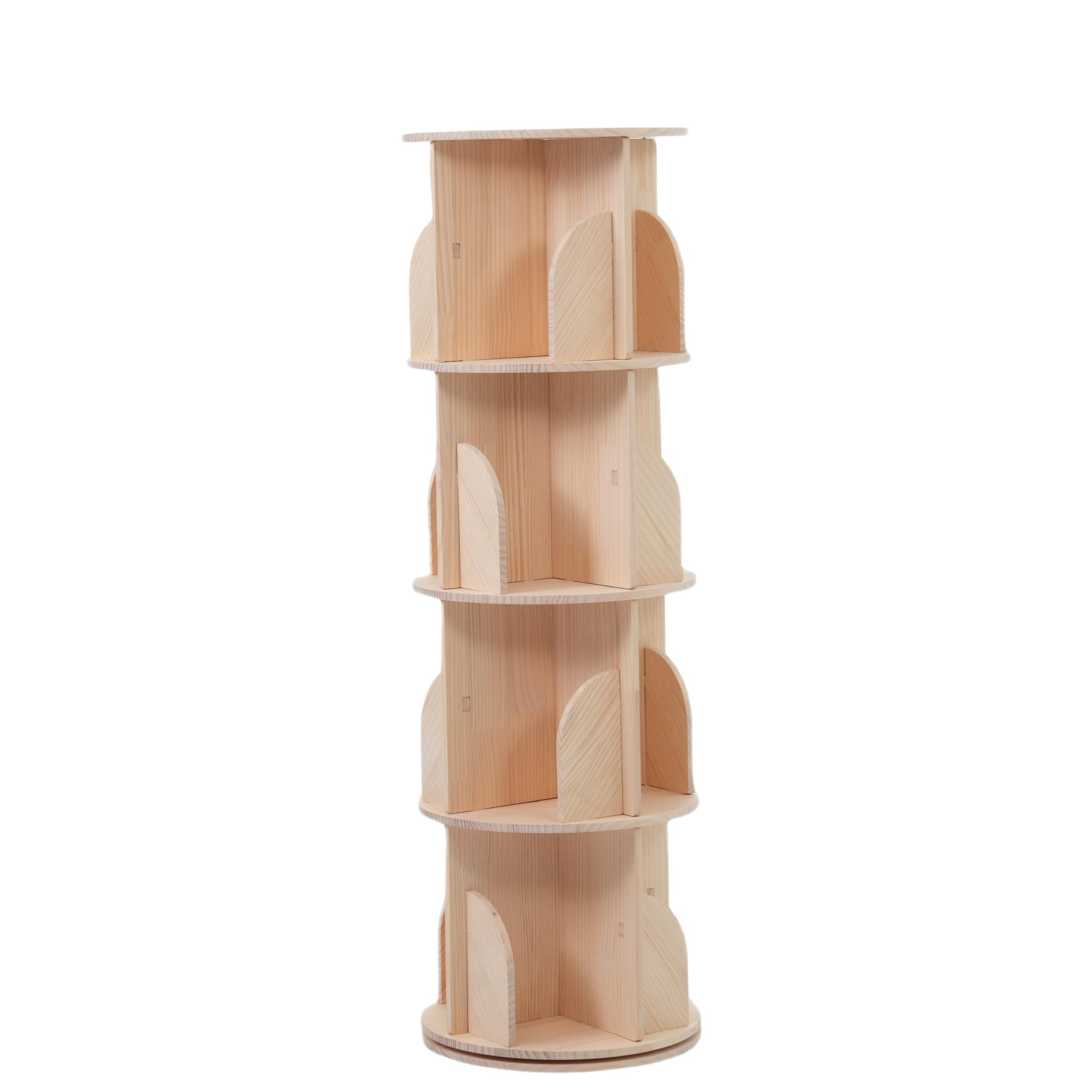 OSJ【4段-回転盤タイプ】無垢材 回転式本棚 飾り棚 絵本棚 360°回転本棚 コミック収納棚 本棚 大容量 回転ラック 組立簡単 省スペース 収納ラック 4段 漫画収納 雑誌 教科書 CDラック DVDラック フィギュアラック 組立簡単 省スペース