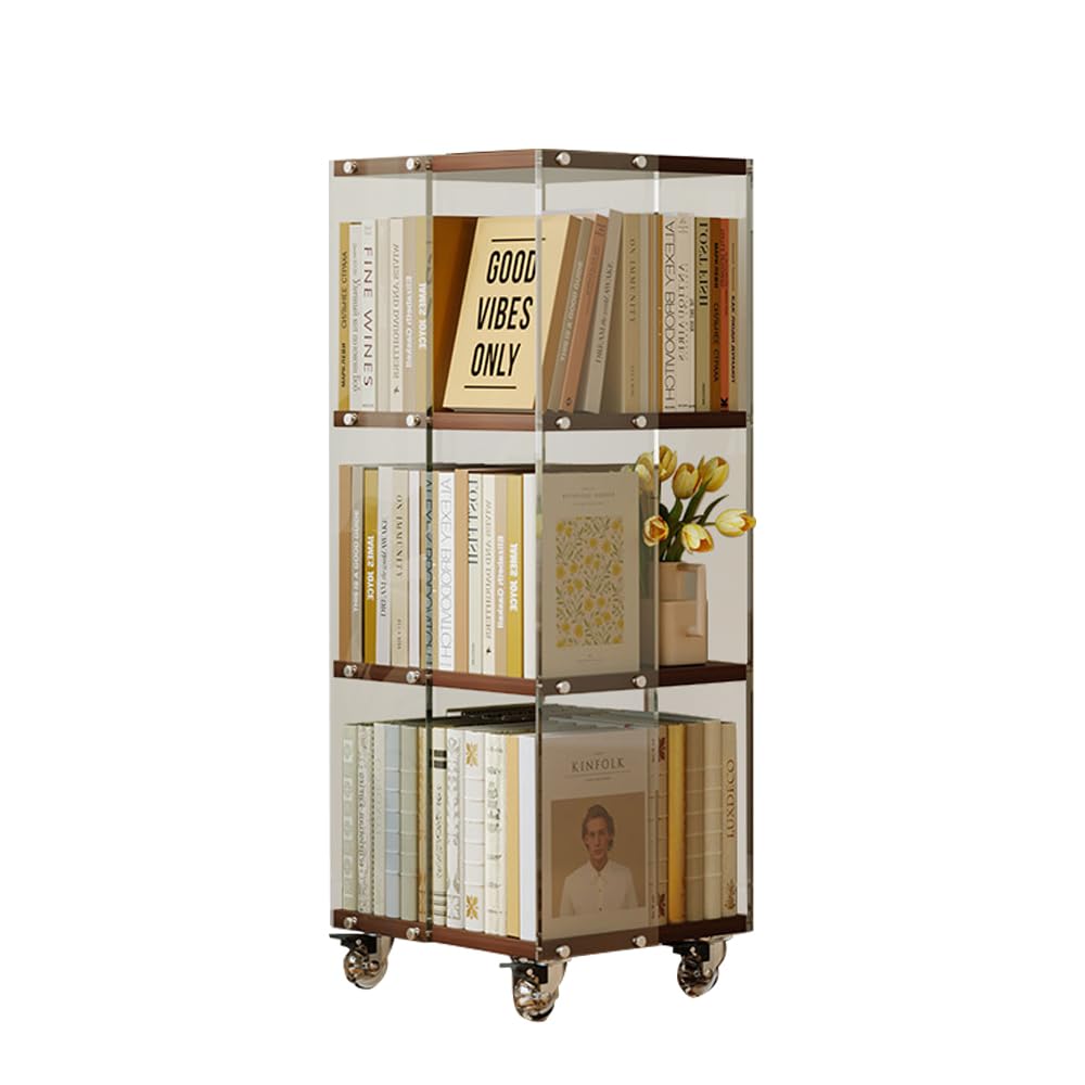 Yumcute 回転式本棚 キャスター付き アクリル スリム 回転 本棚 大容量 省スペース CD DVD収納 回転本棚 本 収納 ブックラック 漫画棚 見せる 回転ラック コミック 絵本 ラック cdラック dvdラック 新生活 おしゃれ