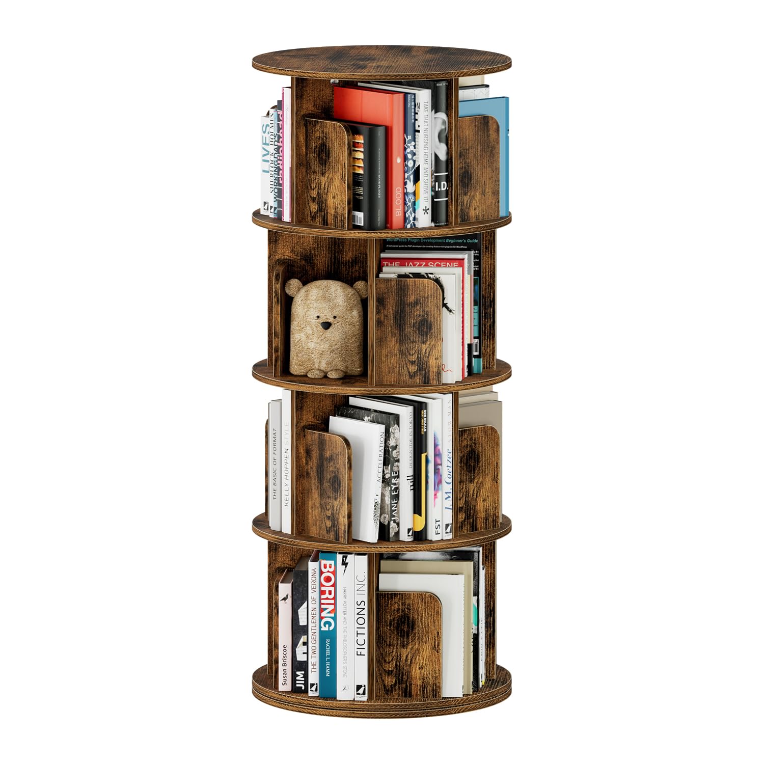 APPOLYN本棚 回転式本棚 4段 直径40CM*高さ128CM A4紙が入る高さ コミックラック 漫画 絵本棚 収納棚 大容量 CDラック DVDラック レトロカラー