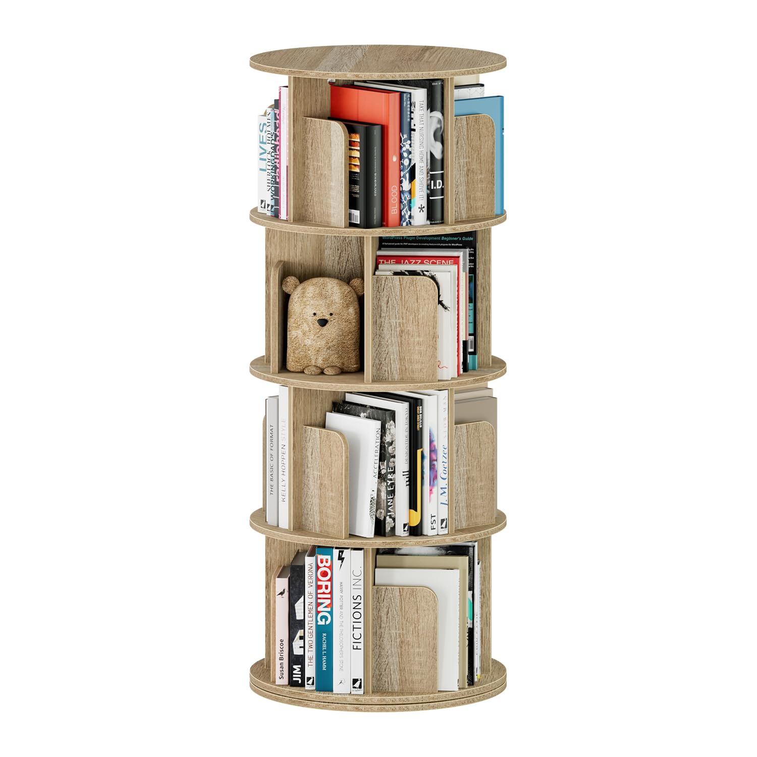 APPOLYN本棚 回転式本棚 4段 直径40CM*高さ128CM A4紙が入る高さ コミックラック 漫画 絵本棚 収納棚 大容量 CDラック DVDラック オーク