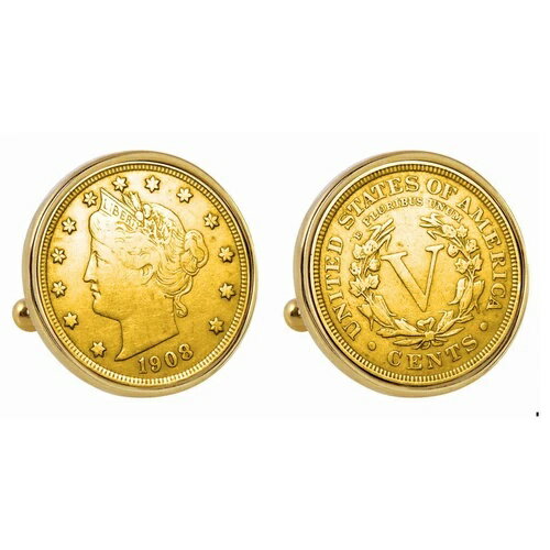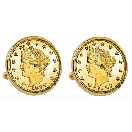 新品 ゴールドレイヤー 1800年代 リバティニッケル ゴールドトーン ベゼル コイン カフスボタン 13565