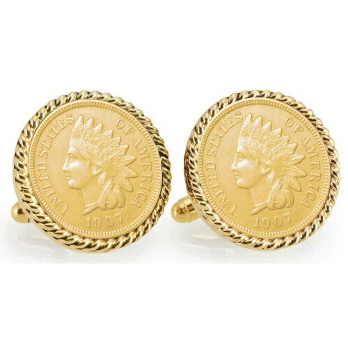 新品 ゴールドレイヤード インディアンヘッド ペニー ゴールドトーン ロープベゼル コインカフスボタン 12767