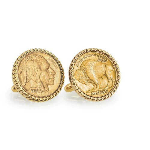 新品 ゴールドレイヤード バッファローニッケル ゴールドトーン ロープベゼル コインカフスボタン 12759
