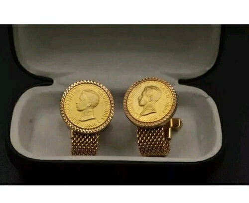 イエローゴールドメッキ スペイン国王アルフォンソ13世 1904年 コインスタイル カフスボタン 箱入り