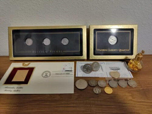ミックスロット バッファローニッケル&スタンディングリバティクォーター - 24Kゴールドフレークカフスボタン