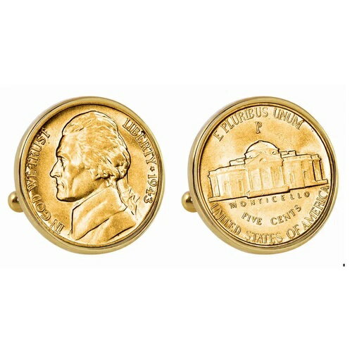 新品 金メッキシルバー ジェファーソンニッケル 戦時ニッケルベゼル コインカフスボタン
