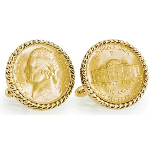 金メッキシルバーのジェファーソンニッケル製戦時ニッケルロープベゼルコインカフスボタン
