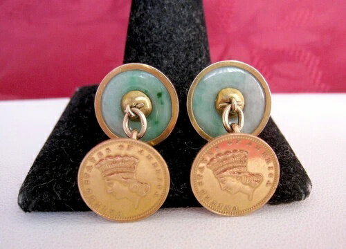アンティーク レア 2枚 米国製 ラージ リバティヘッド 1ドル金貨 タイプ3 翡翠カフスボタン