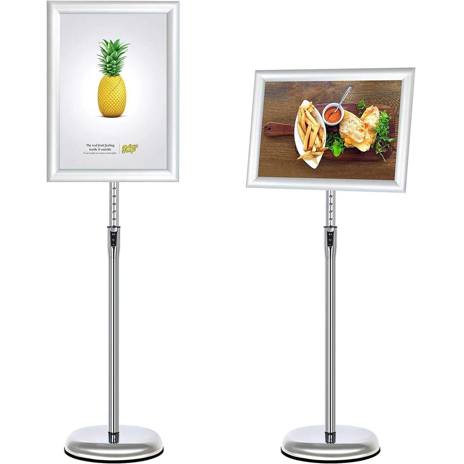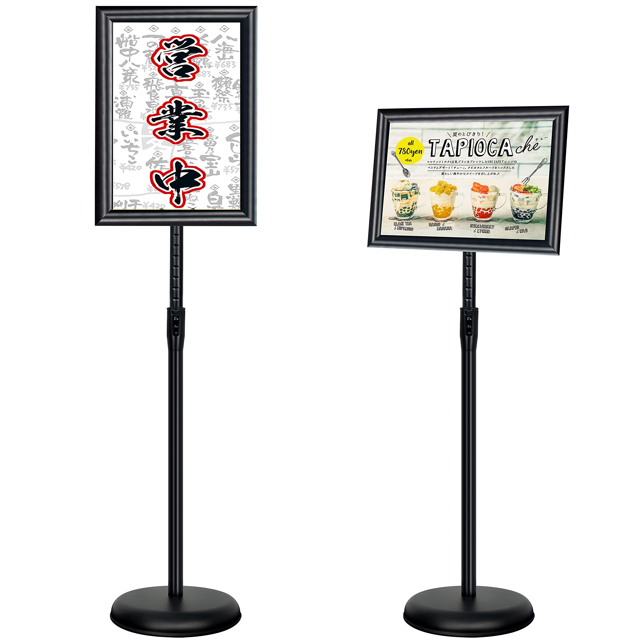 ・???高さと角度の調整:VAIIGO A4案内板の高さが調整できる範囲は81-125cmです。フレームは360度の角度が回転できます。ポールの直径は3cmです。(A 4画面サイズ:21 x 29.7 cm/A 3画面サイズ:29.7 x 42cm)・???PVC保護フィルム:案内板のフレームにはUV PVCの防護カバーが含まれており、ほこりや指紋、悪天候を防ぐことができます。ポスターの鮮明度を効果的に保護します。(部品が壊れたら、交換できます。)・???安定した台座:案内板の台座はステンレス製で、とても頑丈です。そして、台座に水や砂を注ぐと、情報ボードの屋外作業をより安定させることもできます。(台座にはゴムの条が付いております。床を摩擦から守ります。)・???店舗看板の最適な選択:VAIIGO案内板は優れたポスター展示アシスタントで、店の看板、ホテル、ショッピングセンター、デパート、オフィス、展覧会、コンサート、結婚式、学校、病院の玄関などに適用されます。広告、ポスター、販促割引、情報通知に用いられ、人々の注目を集めることができます。(室内と屋外は全部使えます。)・???専門のアフターサービス:VAIIGO案内ボードは簡単で使いやすいです。責任を持つ売り手として、12ヶ月の品質保証付きを提供します。使用中に何かの問題があったら、いつでも連絡してください。お客様に解決策を提供いたします。お客様が満足できたのは私たち最大の願いです。会社案内で玄関前に置いてるだけで印象が変わる!? イベントの案内やポスターを挟むだけで告知が出来て多種多様な場面で活躍します 飲食店などで店前に置いているだけでお客様の集客率がアップするかも 伸縮可能で伸びる為、ちょうどいい高さに調節可能! 角度調節も可能でパネルはA3サイズで大きく表示できます。