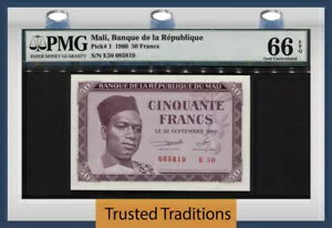 TT PK 1 1960 マリ 50 フラン PMG 66 EPQ GEM - 独立後の最初のメモ