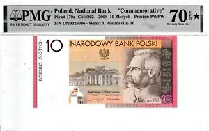 ポーランド 10 ズロティチ、2008 年、独立を取り戻すピルスツキ P-179a、EPQ UNC PMG70*
