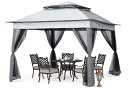 ・・二重屋根:美しくソフトな二層式カバーは、通常の布や金属材料と比較して、優れた通気性と安定性を保てます。屋根間の隙間にメッシュがつけられているので、虫の侵入も防げます。また、軒先には複数のドレインホールがあり、水が溜まらず、耐用年数を延長することができます。生地全体はポリエステル材料を採用、シルバーコーティングが施されていて、防水性能やUVカット効果も期待できます。夏場に涼しく快適な空間を提供します。・・広い空間:幅3x3mのストレートレッグと幅3.35x3.35mの屋根カバーは最大11平方メートルの日陰を提供できます。8人以上の家族や友人との集まりにも十分な大きさです。しかも、メッシュスクリーンも付いています。メッシュスクリーンで四面丸囲いして、夏の虫対策がもちろん、プライバシーも確保できます。・・組立簡単:クロストラス構造で設計されており、1・2人で簡単に設置できます。ツールは必要ありません。またご注意、悪天候時の使用にはご遠慮ください。・・マルチユース:晴雨兼用のガゼボなので、友人との裏庭のBBQあつまりやお茶会はもちろん、結婚式、パーティーなどの屋外イベントにも最適です。・・アフターサービス:本製品はご購入日から、フレームに12ヶ月の保証が付いていて、他の部分に6ヶ月の保証が付いています。万が一、初期不良が発生した場合は、どうぞお気軽くにお問い合わせください。速やかに対応させていただきます。部品の交換は無料で、ご安心ください。