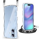 iPhone 17 用 ケース クリア ショルダー アイフォン 17 用 カバー うねうね 透明 人気 かわいい 耐衝撃 スマホケース ストラップ付き 取り外し可能 長さ調整可能 首かけ 肩掛け 薄型 軽量 TPU ワイヤレス充電対応(クリア)