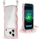iPhone 17 Pro 用 ケース クリア ショルダー アイフォン 17 Pro 用 カバー うねうね 透明 人気 かわいい 耐衝撃 スマホケース ストラップ付き 取り外し可能 長さ調整可能 首かけ 肩掛け 薄型 軽量 TPU ワイヤレス充電対応(ピン