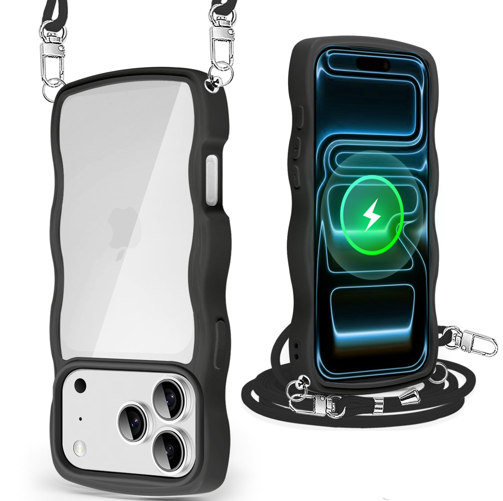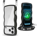 iPhone 17 Pro 用 ケース クリア ショルダー アイフォン 17 Pro 用 カバー うねうね 透明 人気 かわいい 耐衝撃 スマホケース ストラップ付き 取り外し可能 長さ調整可能 首かけ 肩掛け 薄型 軽量 TPU ワイヤレス充電対応(ブラ