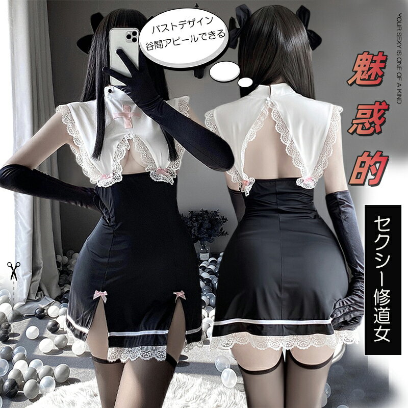 商品情報商品説明■いつもとひと味違う特別なデザインのメイド服コスチューム。誕生日、結婚記念日、クリスマス、ハロウィン、など特別な日の思い出作りや、 コスプレに興味がある・非日常を体験してみたい方に。また彼女や奥様へのプレゼントにいかがでしょうか。■部屋の中でも外のコスプレでも、どっちでも楽しめちゃう素敵なコスチューム。SENMHS シスター 修道女 コスプレ セクシー コスチューム ランジェリー メイド 可愛いコスプレ かわいい 衣装 仮装 撮影 コスランジェリー ハロウィン ワンピース Tバック アームカバー ストッキング 4点セット ポイント キュートなCOS服、あなたの中の少女を目覚めさせてください。 5