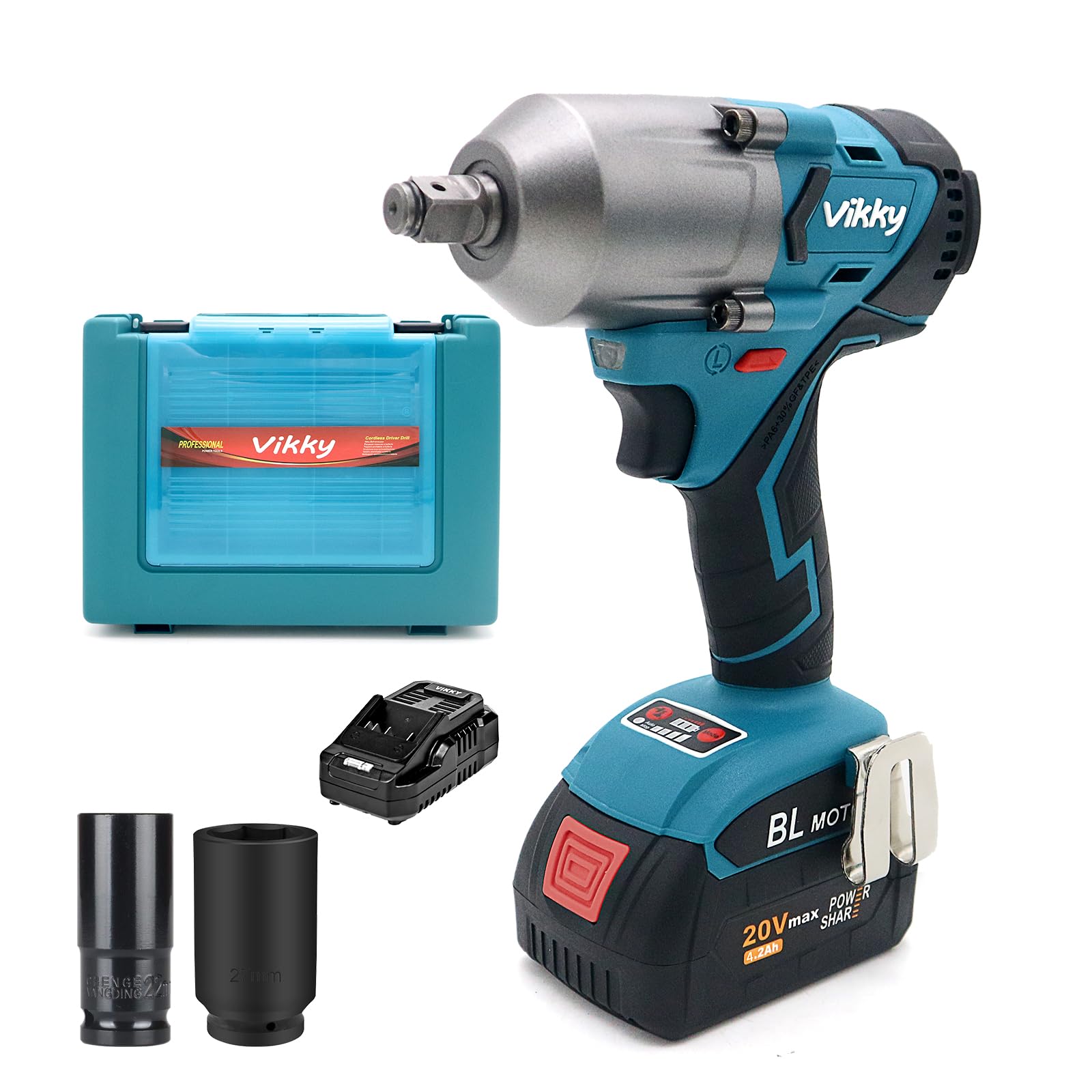 Vikky 20V 4.2Ah コードレスインパクトレンチキット750Nm(550 ft-lb)、1/2インチ、ディープインパクトソケットセット2PCS付き、 1/2" Drive Metric
