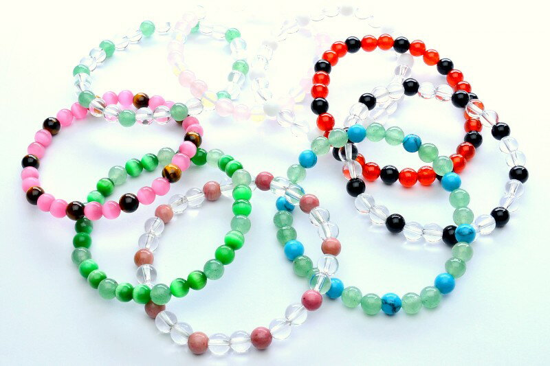 天然石:水晶・アベンチュリン・オニキス・キャッツアイ(人工)・タイガーアイ・ホワイオニキス・ピーモンタイト・赤メノウ【材質】6mm■ A.水晶×アベンチュリンブレスレット■ B.水晶×白オニキスブレスレット■ C.水晶×オニキス■ D.オニキス×赤瑪瑙(レッドアゲート)■ E.ローズクォーツ×オパール■ F.ハウライトターコイズ×アベンチュリンブレスレット■ G.水晶×ピーモンタイト(シャリシャスシスト)■ H.グリーンキャッツアイ×アベンチュリン■ I.ピンクキャッツアイ×タイガーアイ