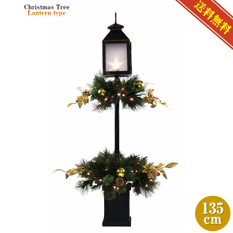 LEDクリスマスツリー135cm ランタン ゴールド 北欧 おしゃれ 豪華 高級 装飾 上品 LEDライト ポットツリー クリスマスツリーセット スリム スリムツリー クリスマスツリー 飾り オーナメント付き インテリア