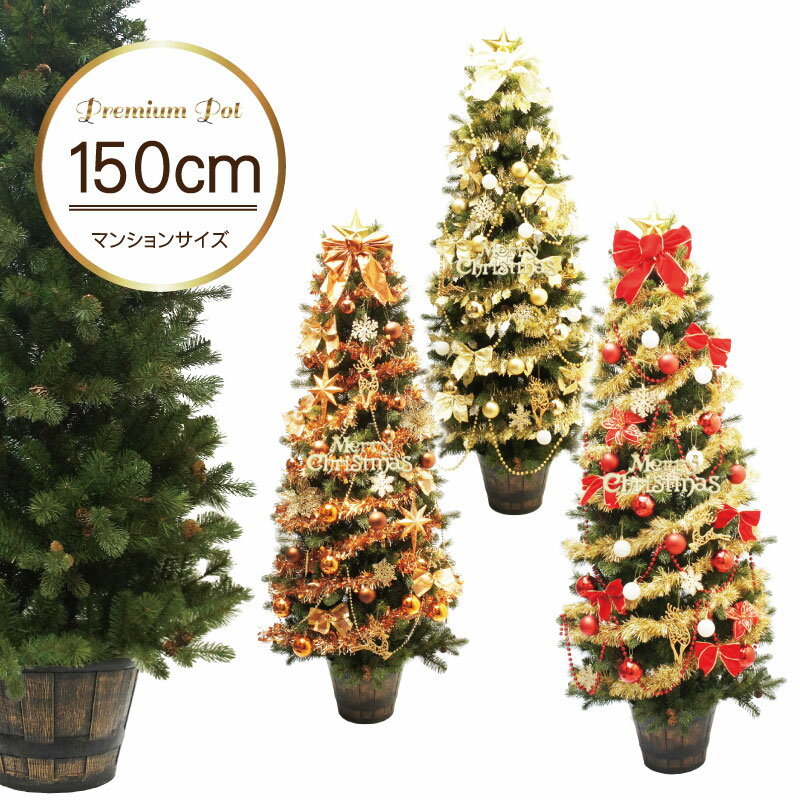 クリスマスツリー 北欧 おしゃれ プレミアムウッドベースツリー150cm ポットツリーセット オーナメント 飾り セット LED インテリア