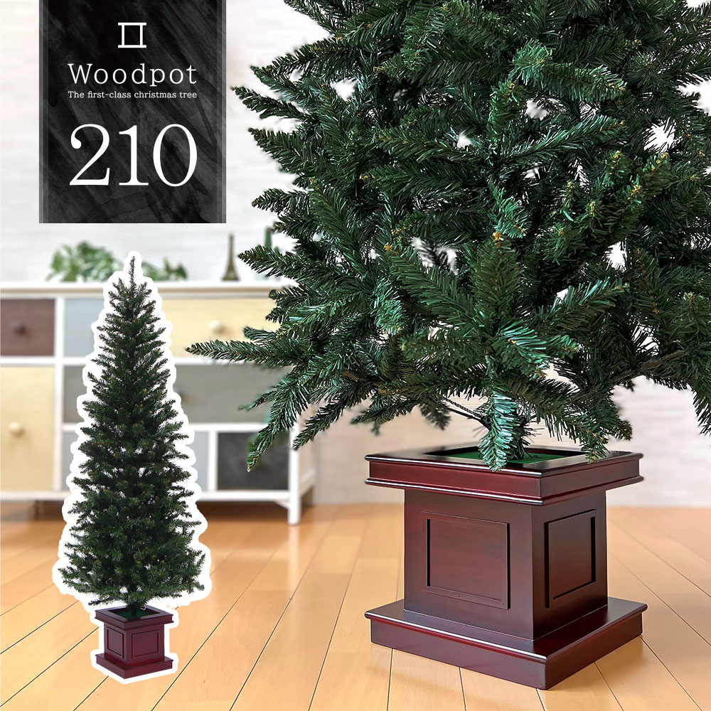 クリスマスツリー 北欧 おしゃれ かわいい ウッドベーススリムツリー210cm オーナメント 飾り なし 木製ポットツリー ヌードツリー 2m 3m 大型 業務用