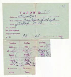 1992年使用 砂糖配給小切手クーポン キロヴァカン アルメニア ロシア 非常に珍しい